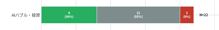 昨年末にかけて沈静化した感のあるマーケットですが、2026年はどこに着地するのか、多くの予測がありました。AIバブルに関する予測をセンチメント分析したところ(下図)