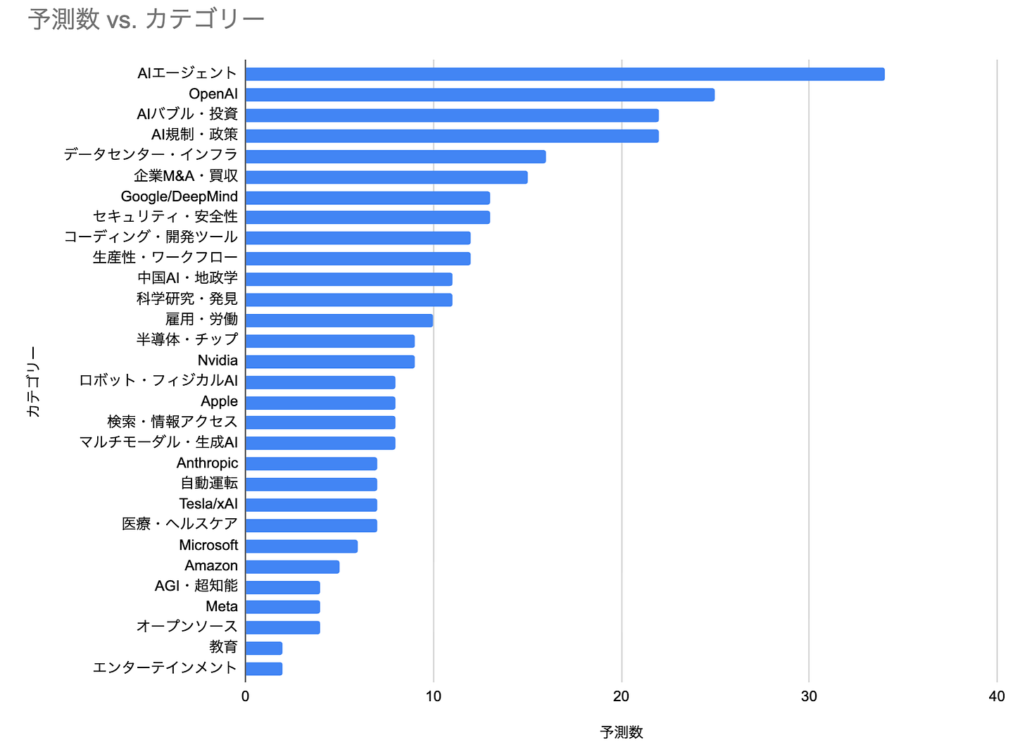 さまざまなソースの予測をトピック分類して集計した結果が下記です: