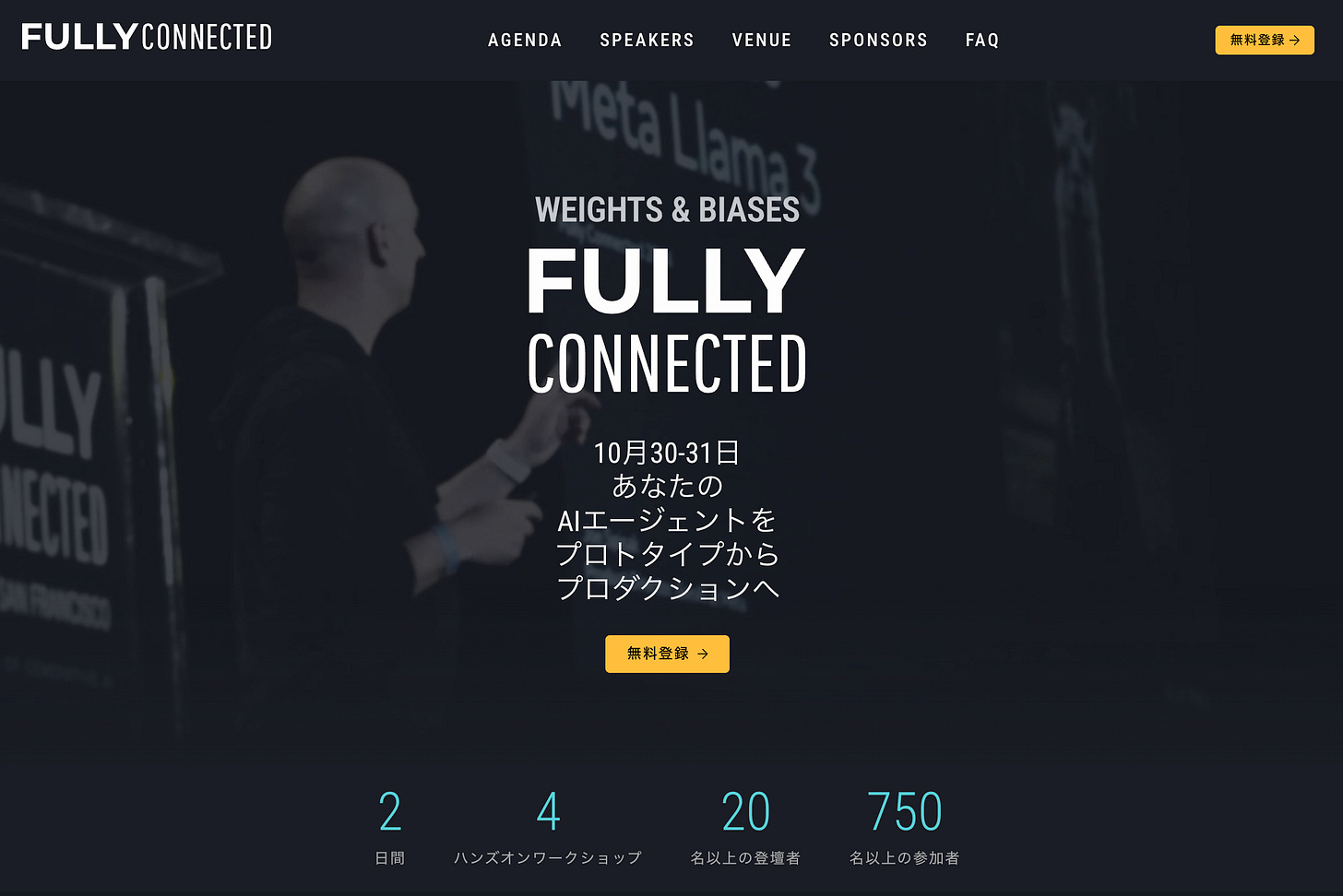 これらの動向を2日間にわたる豊富なアジェンダで、現場視点で俯瞰できるのが、今週開催のFully Connected Tokyo 2025(https://fullyconnected.jp)です。主にWeights & Biasesのユーザー企業を中心に下記のようなスピーカーの登壇を予定しています: